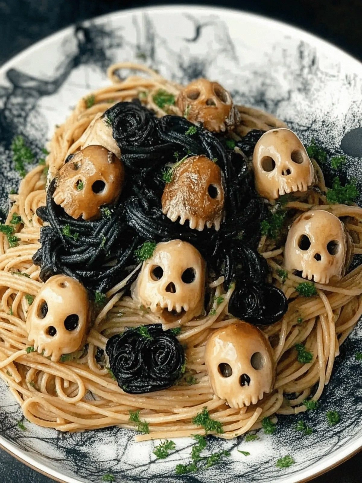 - Seasonal Twist: The dark pasta and mushroom “skulls” give a spooky vibe that’s perfect for Halloween parties.